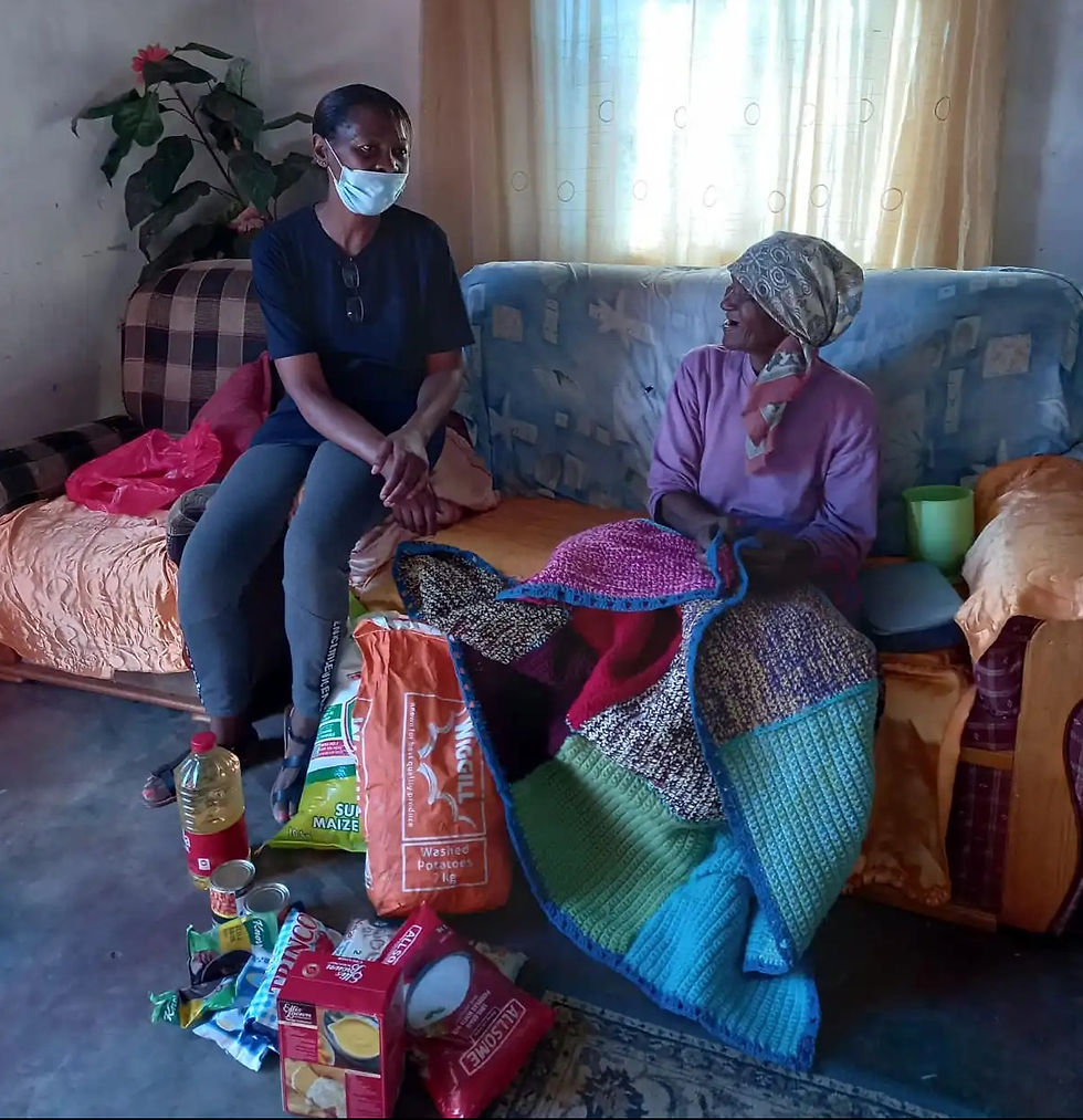 Sister Grace donating a blanket made by the Knitting Club of Vaalwater